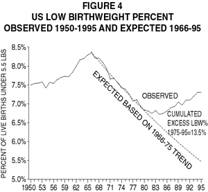 U.S.A. Newborn Deterioration in the Nuclear Age, 1945-1996 In figure 4 we have calculated what the expected USA low birthweight percentage